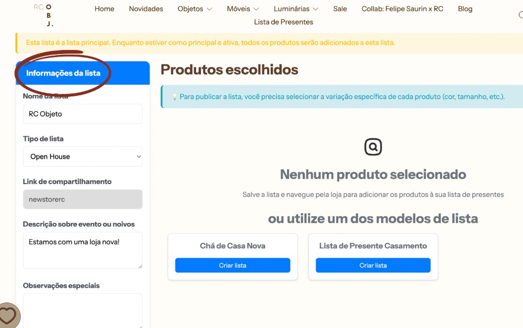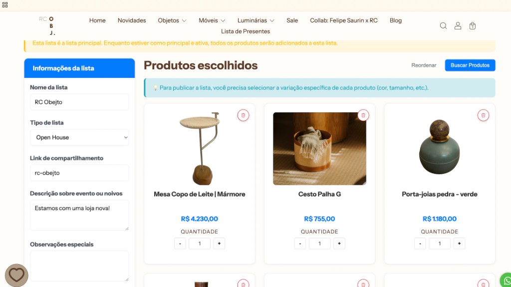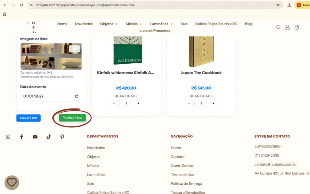 07. Após isso, clicar em SALVAR E PUBLICAR LISTA! Ela será postada em nosso site e todos seus convidados terão acesso aos produtos que vc selecionou.