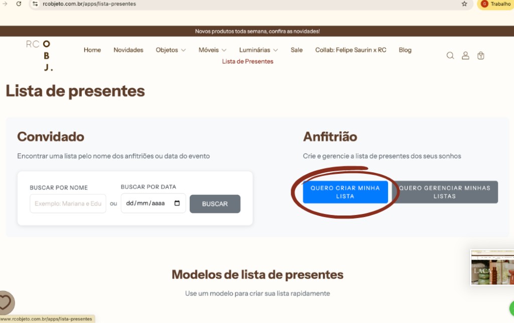 (Clicar em 'quero criar minha lista')