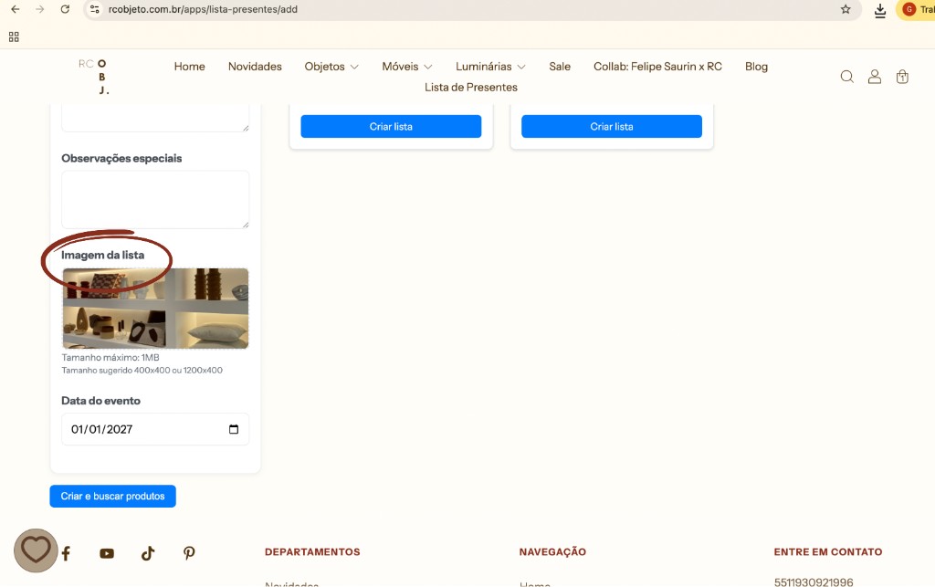 04. Pode adicionar uma foto e criar um nome criativo para sua lista, depois disso Criar e Buscar produtos!