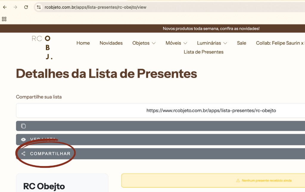 (Clicar em 'lista de presentes')