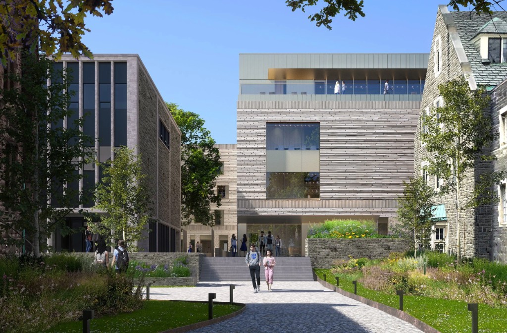 Lawson Centre for Sustainability, um novo edifício inovador no Trinity College, parte da Universidade de Toronto, projetado para ser um centro de sustentabilidade e vida estudantil combinando moradia, salas de aula, espaços comunitários, cozinhas e jardins no coração do campus de Toronto. O prédio foi concebido como um “laboratório vivo” de sustentabilidade, com arquitetura feita em grande parte de madeira de origem local, sistemas de energia renovável como geotermia e painéis solares, um telhado com fazenda urbana e áreas verdes que incentivam agricultura e biodiversidade, além de visar certificações LEED Platinum e Zero Carbon.